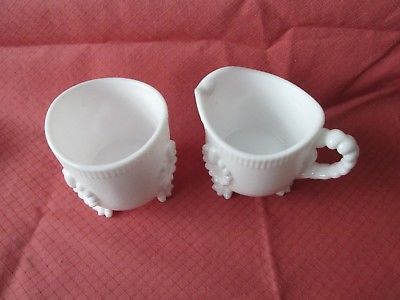 VINTAGE WHITE MILK GLASS CREAMER AND SUGAR SET