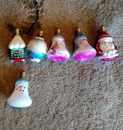 Title (ebay affiliate link): 6 Vintage WORKING Milk-Glass C6-Christmas Light FIGURAL BULBS One SANTA