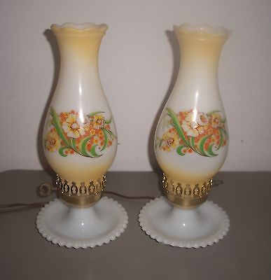 Title (ebay affiliate link): Vint Pair White Milk Glass Vanity Boudior Lamps Two Tone Shades with Flowers