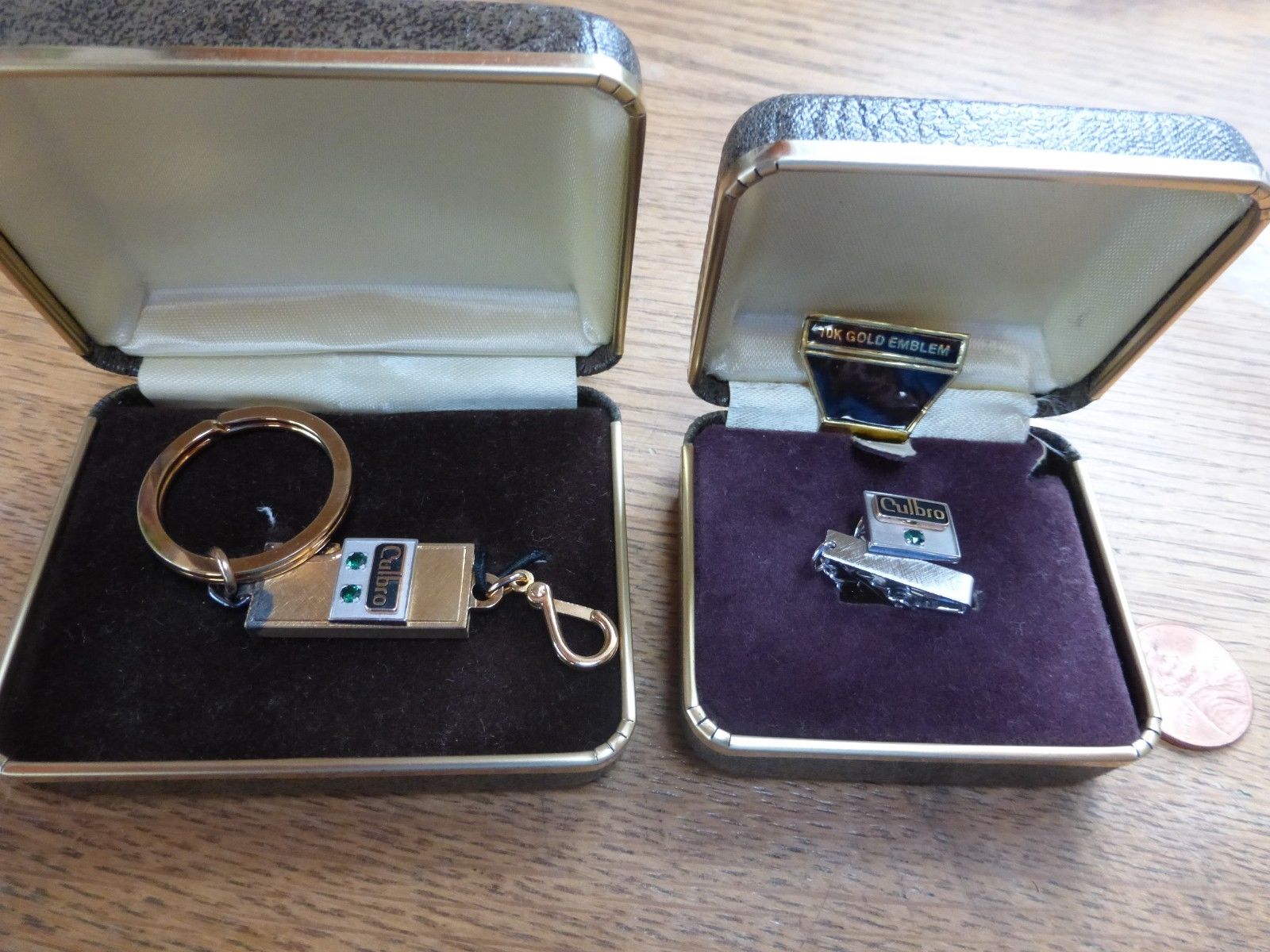 Vintage Men''s tie tack 10k gold emblem sterling clasp & key chain Culbro