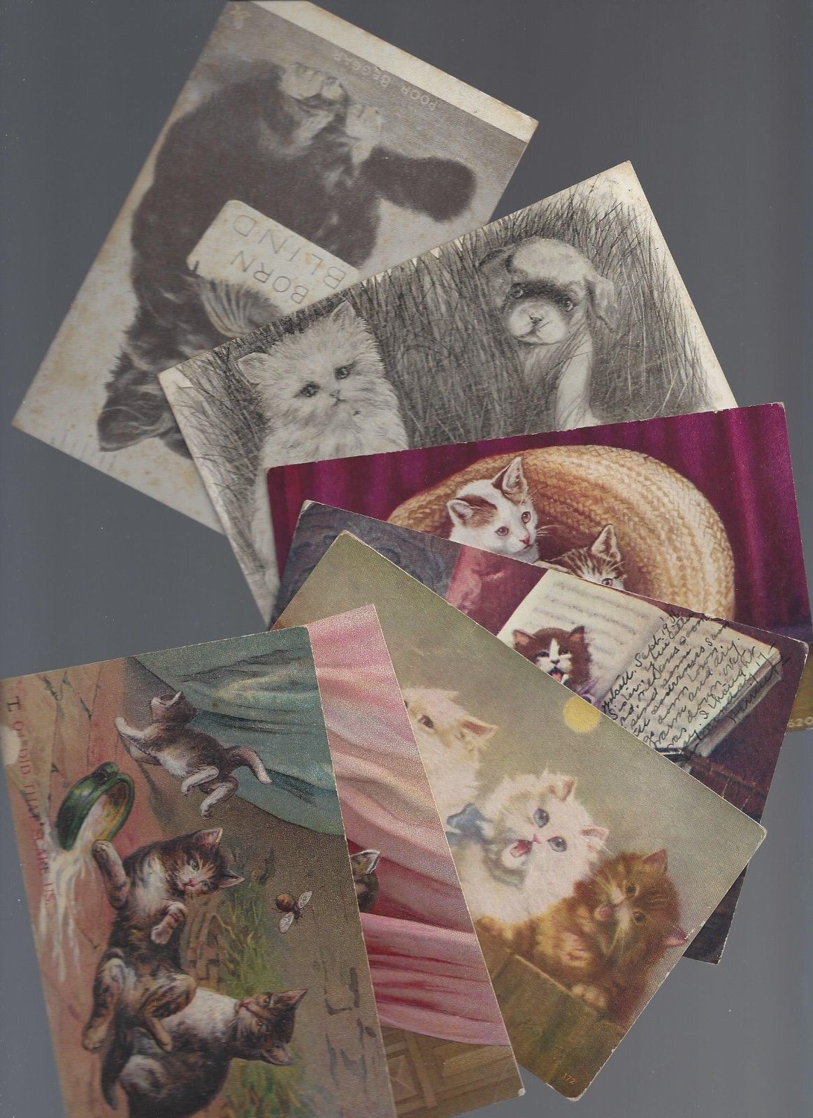 Title (ebay affiliate link): 7 Kitten/Cat postcards; 5 postmarked 1906-1911; all w/ writing; 2 embossed
