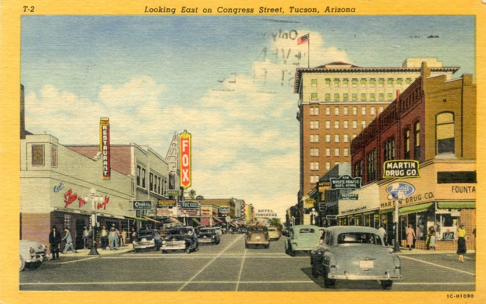 Title (ebay affiliate link): Tucson Arizona AZ vintage linen postcard, Downtown, Theatre, Drugs, classic cars