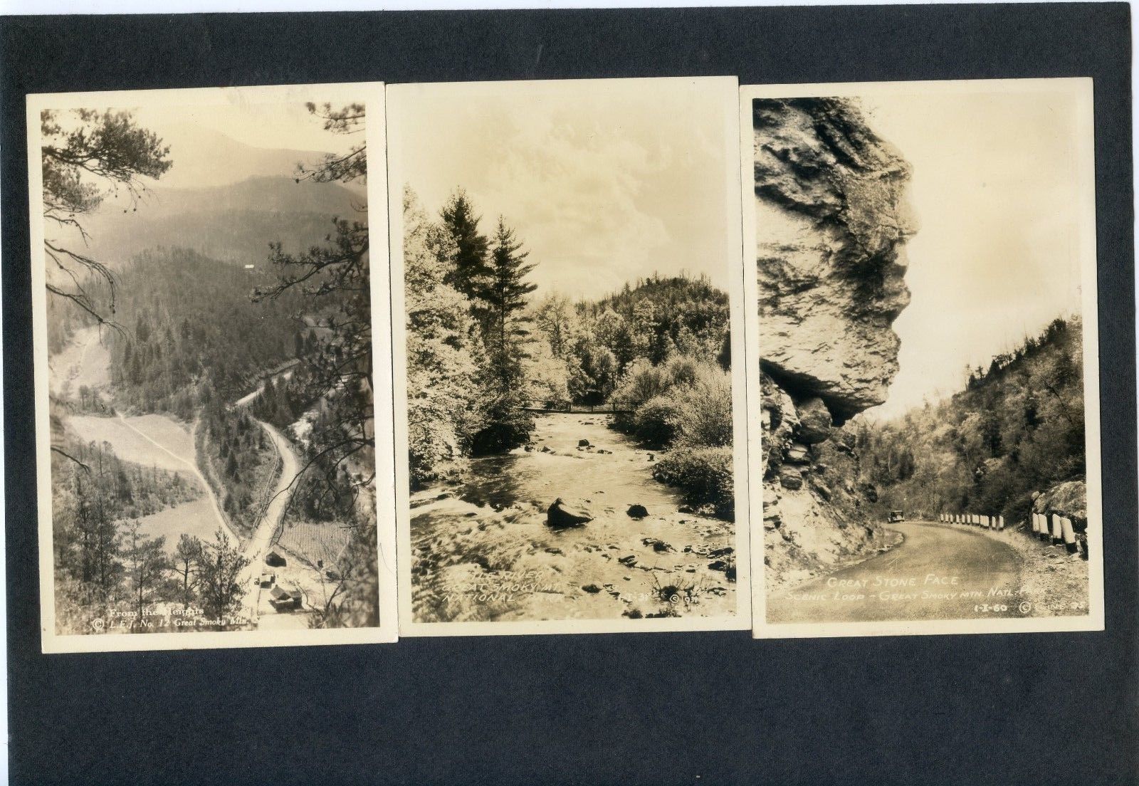 Lot of 3 Great Smoky Mountains National Park, diff. vintage real photo postcards