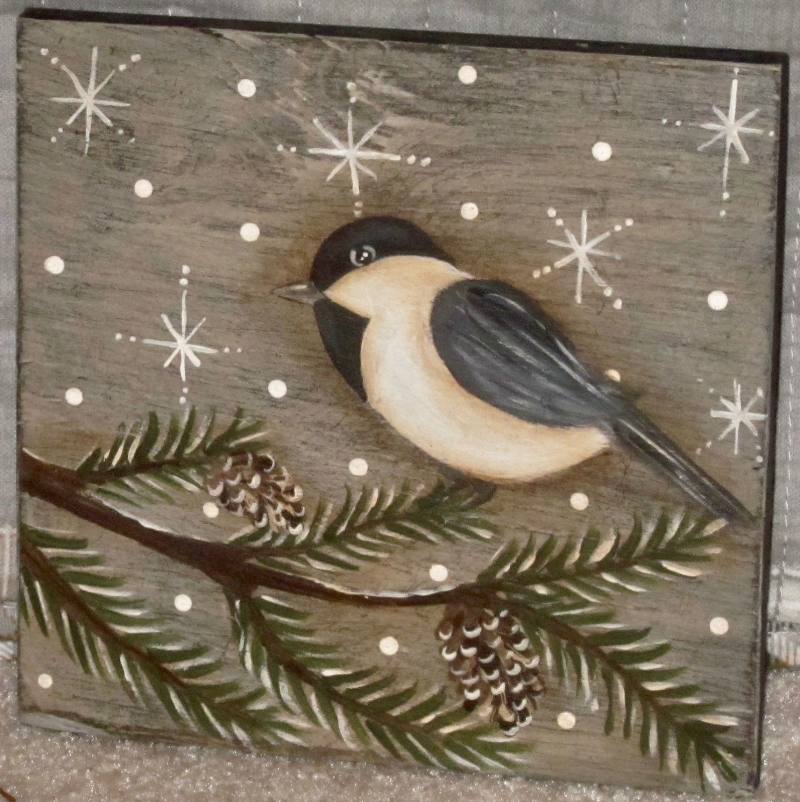Title (ebay affiliate link): *~*PRIMITIVE*~* HP FOLK ART PRIM CHICKADEE *~* WINTER *~* PINE *~* BOARD
