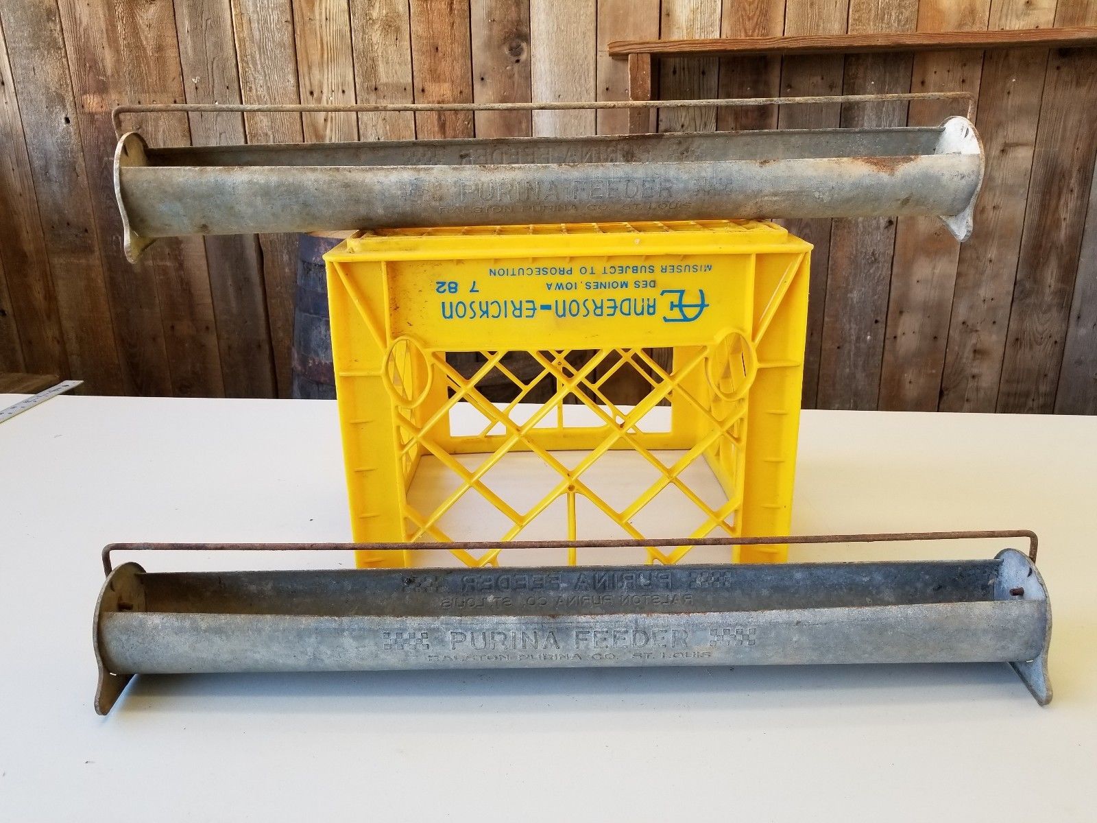 Title (ebay affiliate link): 2 Old Vintage Purina Chicken / Baby Chick Feeders Galvanized Succulents Planter