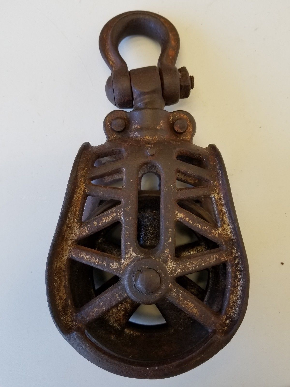Title (ebay affiliate link): Antique Cast Iron Barn Trolley / Hay Carrier Drop Down Pulley Louden Myers VTG