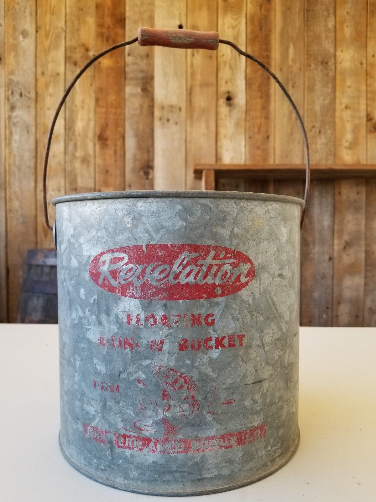 Title (ebay affiliate link): Old Vintage Galvanized Metal Minnow Bucket ~ Primitive Fishing Cabin Farm Decor
