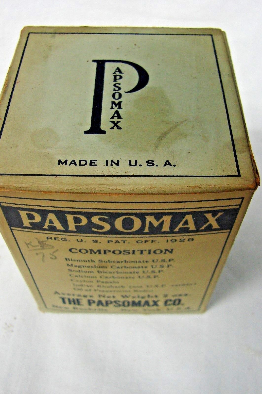 Title (ebay affiliate link): ANTIQUE EARLY VINTAGE UNOPENED PAPSOMAX PHARMACY MEDICINE BOX & TIN