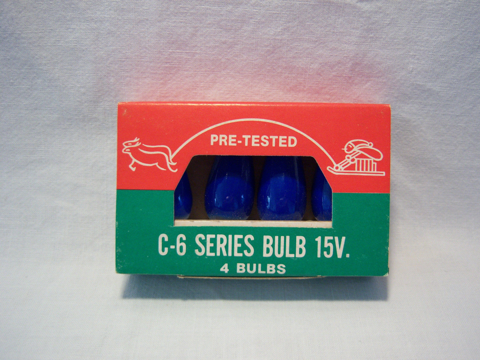 Title (ebay affiliate link): Vintage Pack Of 4 Working C-6 Series Christmas Light Bulbs 15 Volt Japan