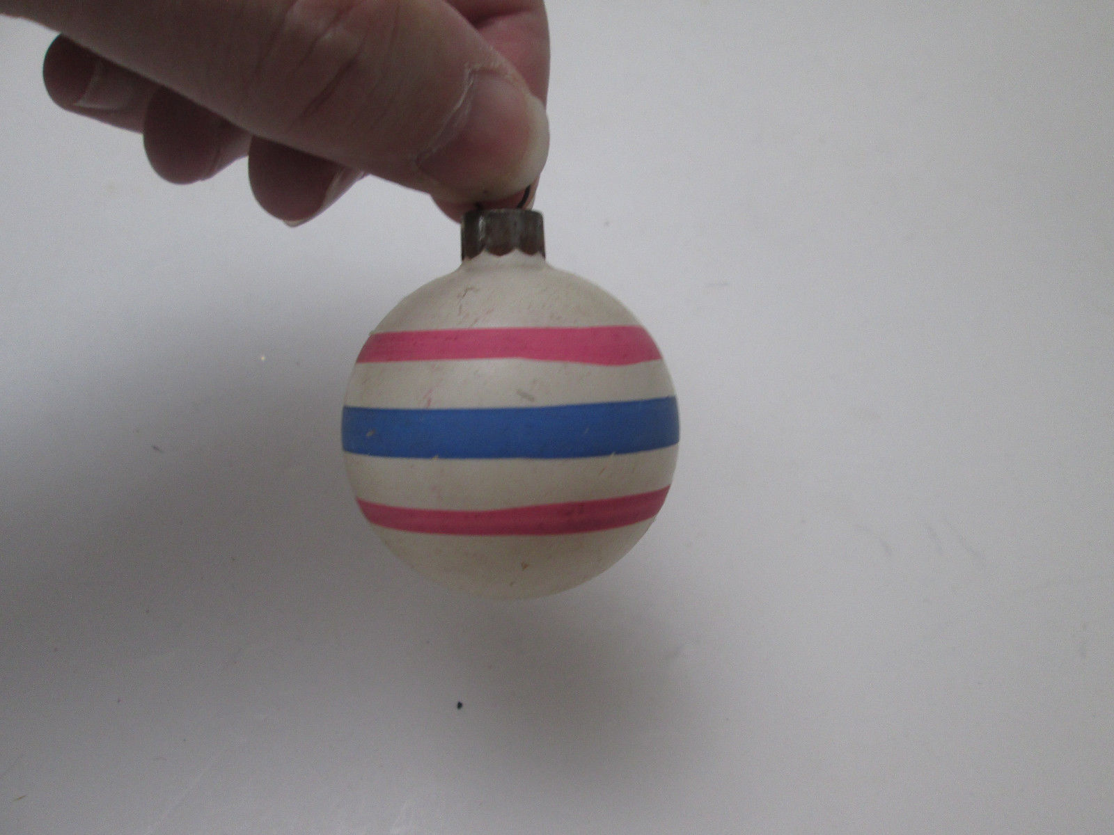 Vintage Unsilvered War Era Christmas Ornament White w Stripes 2 Inch 2021