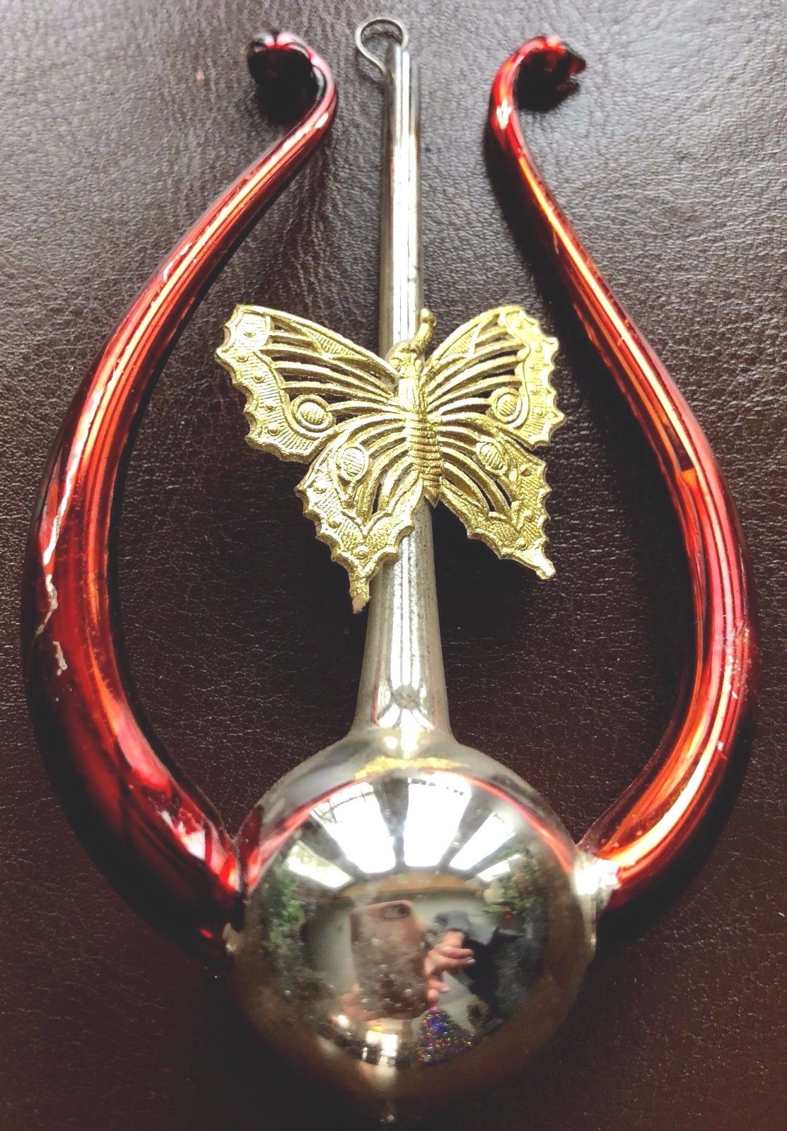Title (ebay affiliate link): Antique Delicate Mercury Glass Xmas Ornament w/Applied Dresden Gold Butterfly