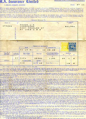 NRMA Motor Car Insurance Policy 27/11/61 rare as!!