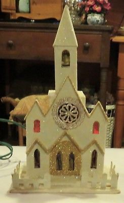 Title (ebay affiliate link): Vintage Glitter Christmas Paper House, Marked Made in Japan 10x6.5" w/Orig Box