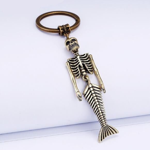 Antique Gold Mermaid Skeleton Charm Penadant Keychain Key Ring Jewelry DIY