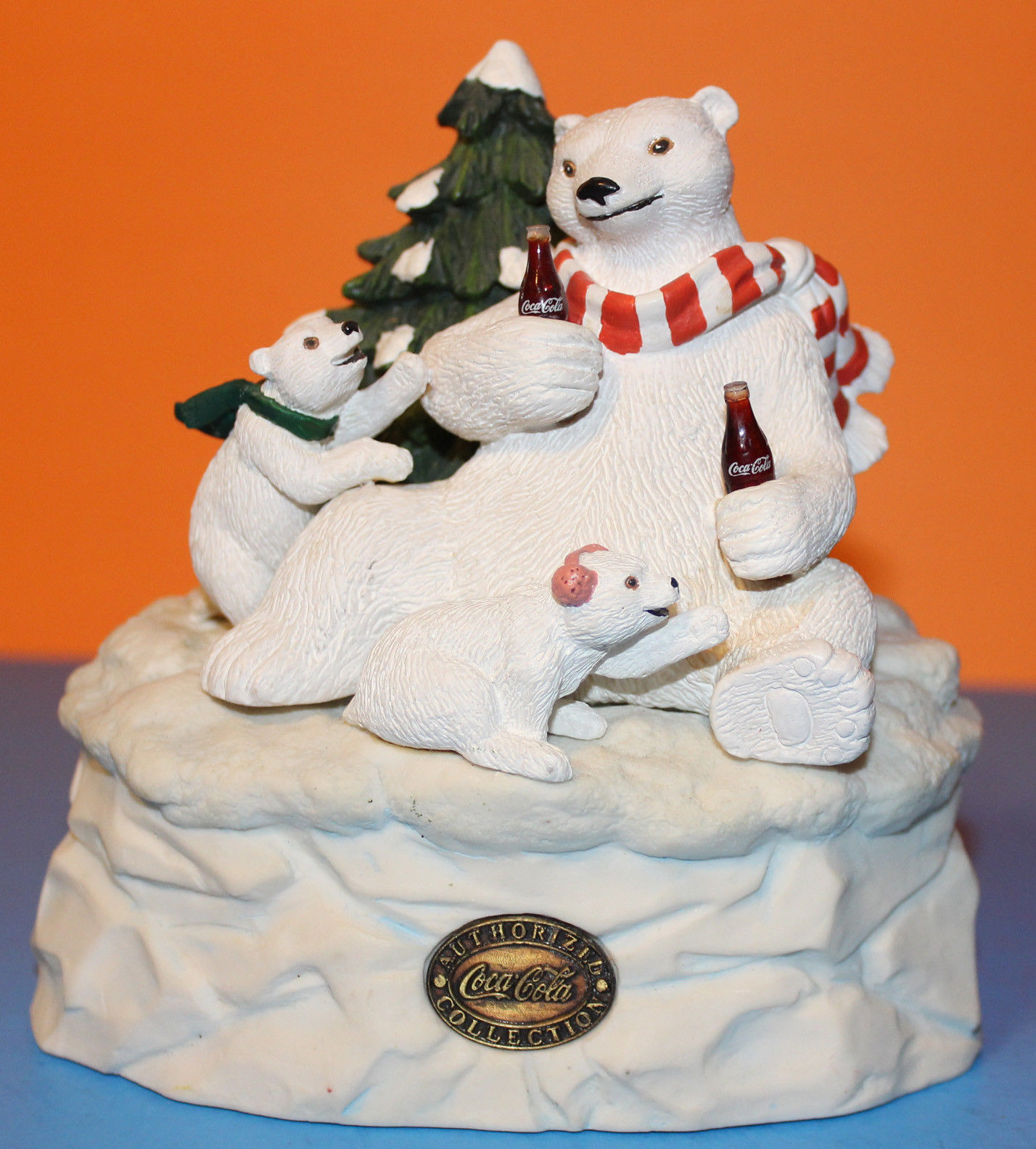 Title (ebay affiliate link): Coca Cola Heritage Collection Polar Bears with Christmas Tree Music Box