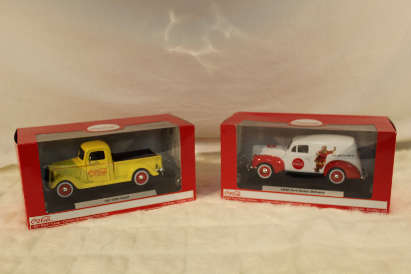 Title (ebay affiliate link): COCA -COLA COLLECTIBLE TOY TRUCKS / 1940 FORD SEDAN & 1937 FORD PICKUP