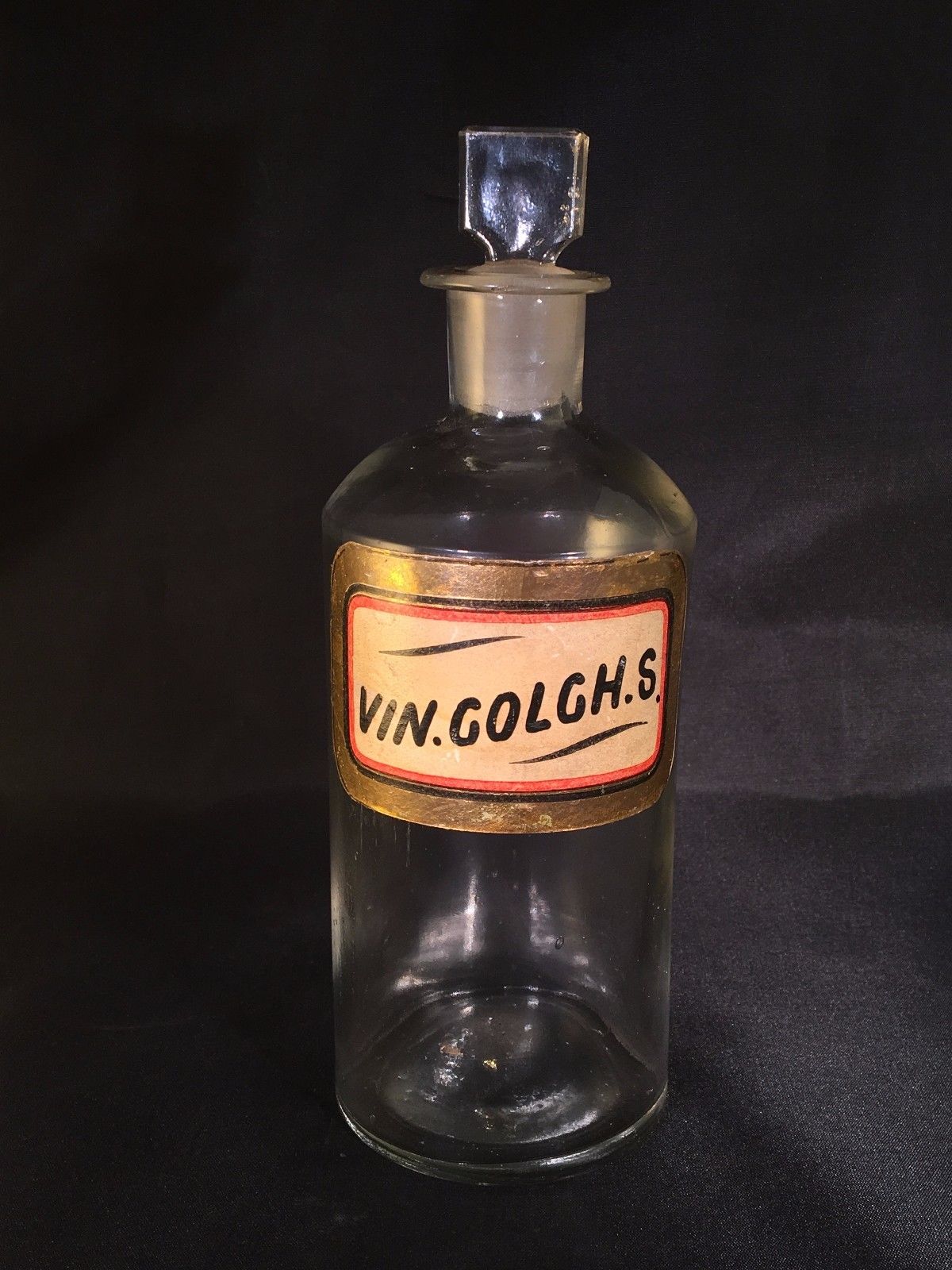 Vintage Pharmacy Vin. Golgh. S Antique Glass w/Stopper Apothecary Bottle, Great!