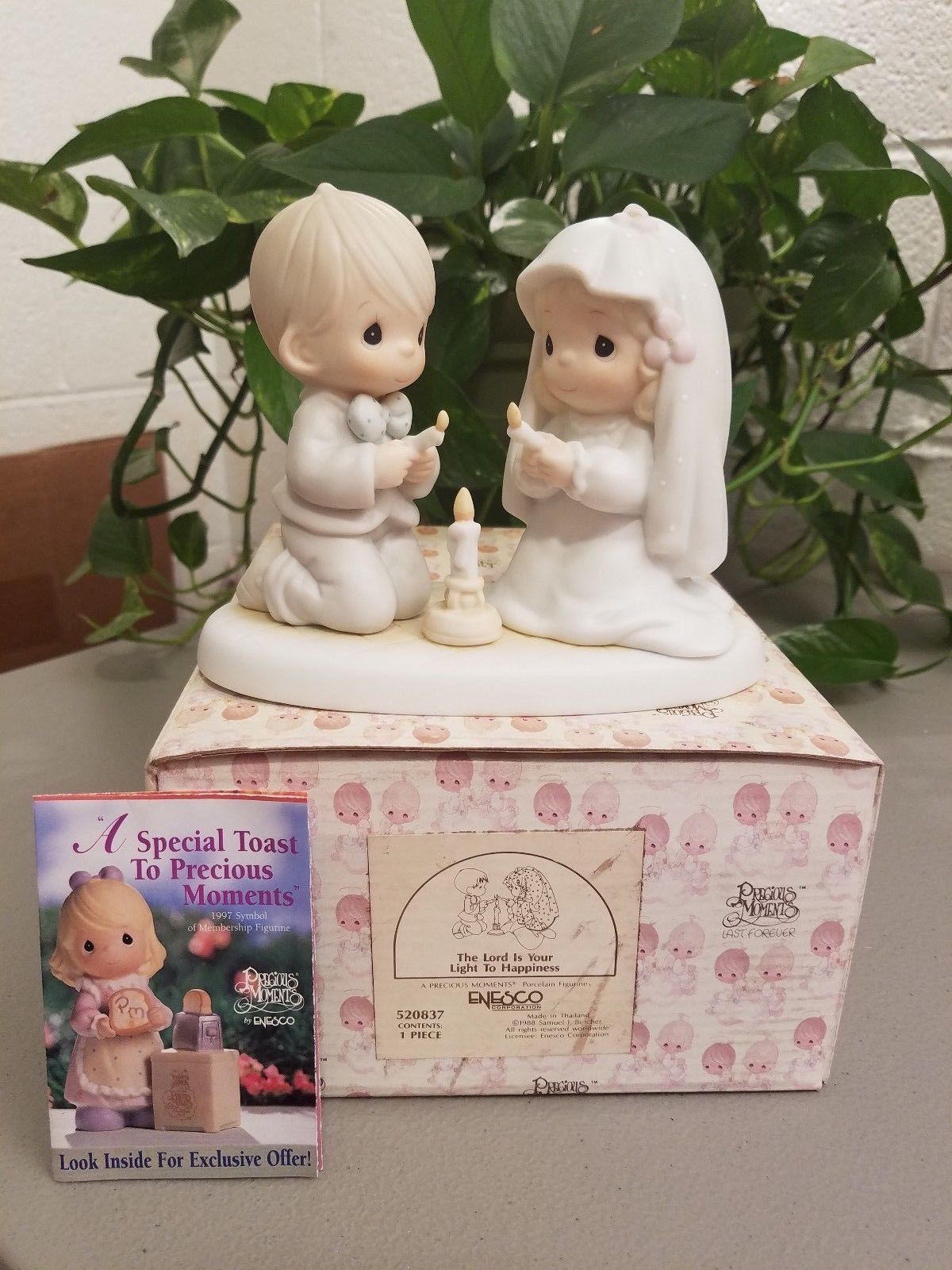 Title (ebay affiliate link): PRECIOUS MOMENTS "THE LORD IS YOUR LIGHT TO HAPPINESS" 520837 RARE WEDDING/$65