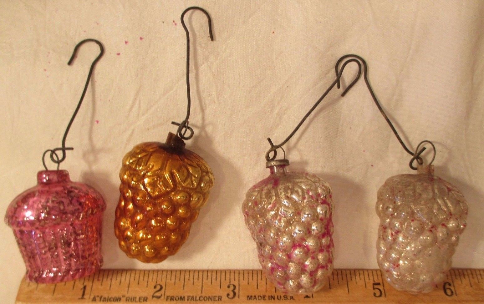 Title (ebay affiliate link): 4 VINTAGE 1940''s BLOWN GLASS CHRISTMAS BULBS ORNAMENTS GRAPE & FRUIT BASKET USED