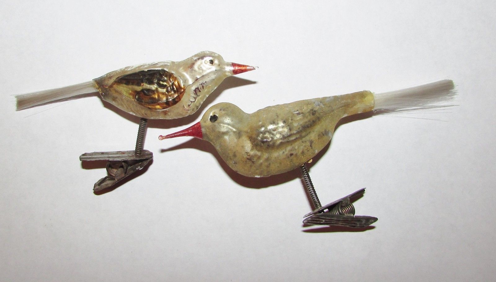 Title (ebay affiliate link): 2 Antique German Clip Figural Bird Ornaments w/Spun Glass Tails AS IS