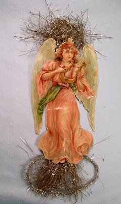 Antique Dresden Victorian Embossed Scrap Angel & Tinsel Christmas Ornament Vtg
