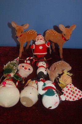 Vintage Christmas Tree Ornament Deer Angel Felted Plastic Santa Snowman Japan