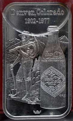 Coca-Cola 75th Anniversary DENVER CO 1 Ounce .999 Silver Bar Ingot Coke #55