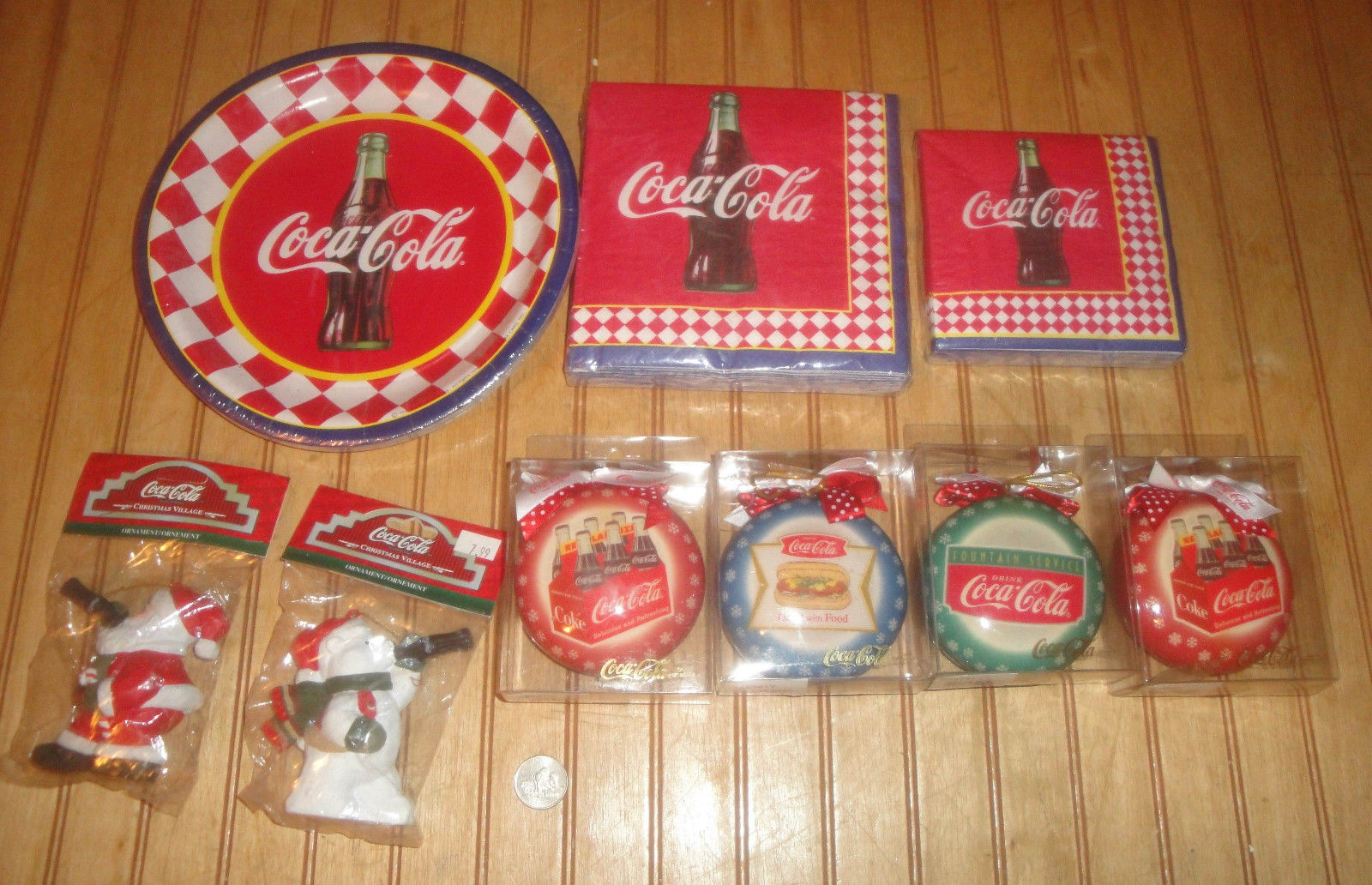 Title (ebay affiliate link): Lot of NOS New Coca Cola Coke Christmas Ornaments, Napkins, Paper Plates Sealed