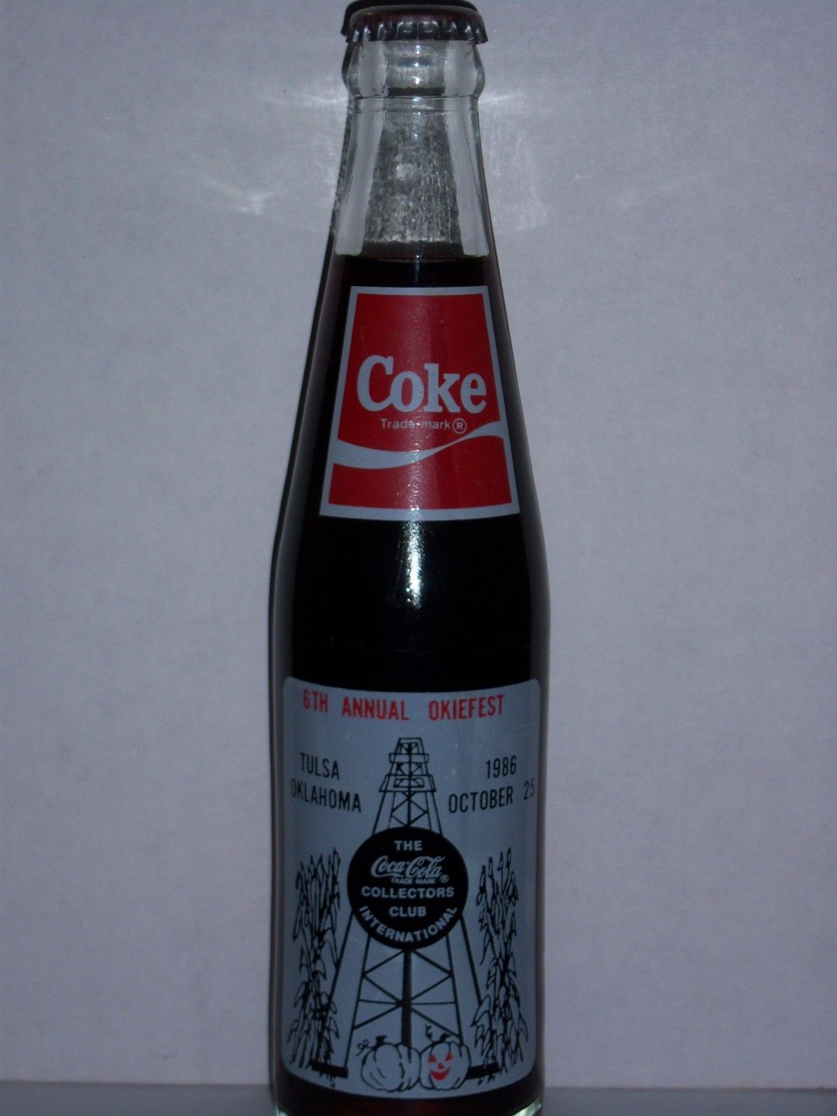 Title (ebay affiliate link): 10 OZ COCA COLA COMMEMORATIVE BOTTLE - 1987 OKIEFEST 6TH ANNUAL TULSA OKLAHOMA