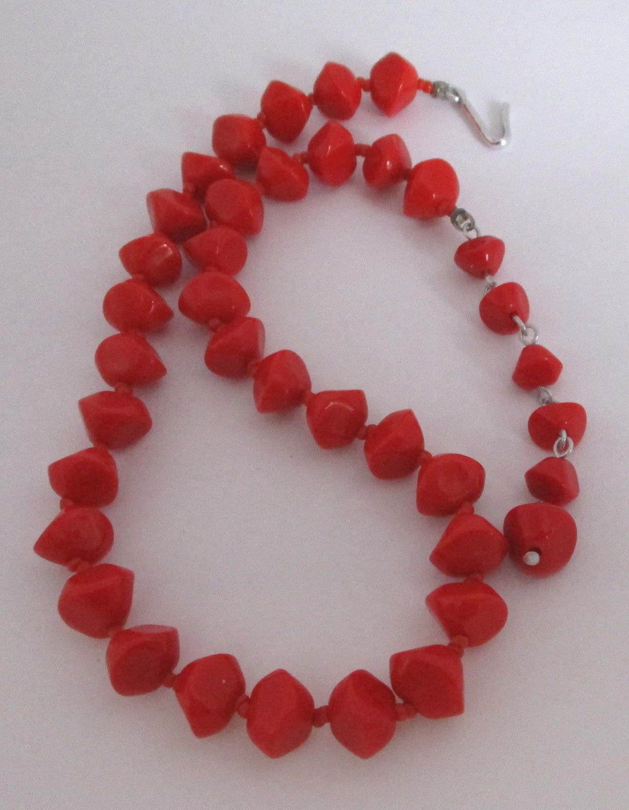 Vintage Cherry-Red Milk Glass Bead Necklace