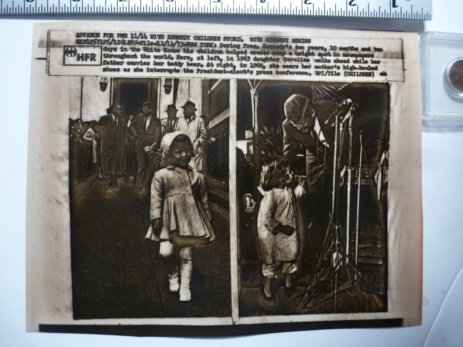 Vintage AP Wire Press Photo 1973 JFK Assassination Caroline Kennedy With Father