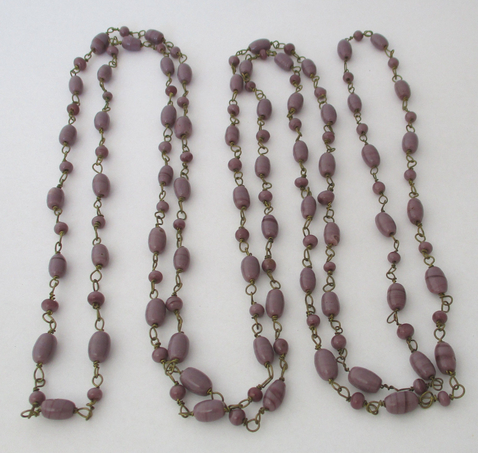 Vintage Lavender Milk Glass Bead Necklace 58"
