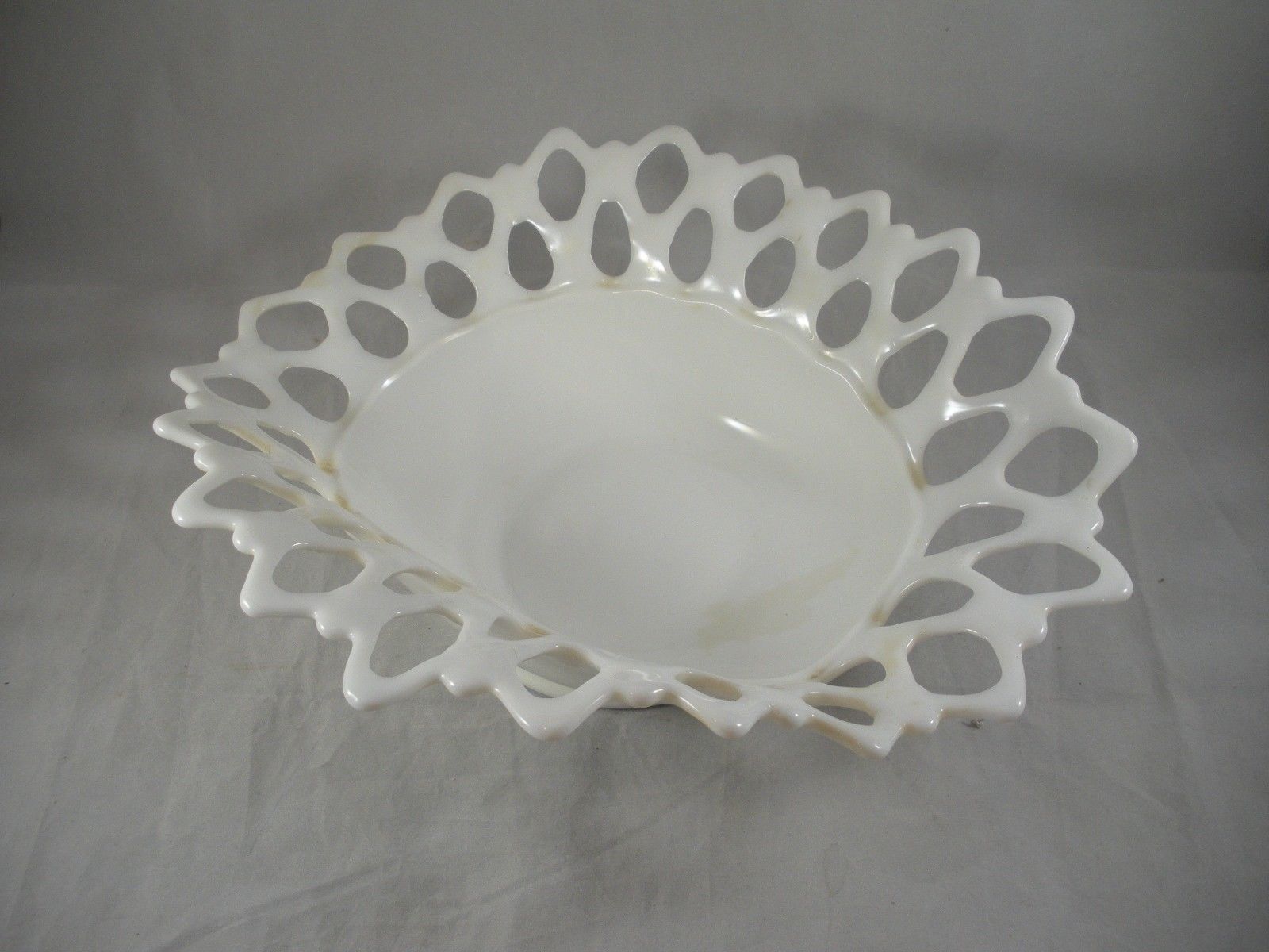 Westmoreland Doric milk glass oval lace edge fruit bowl