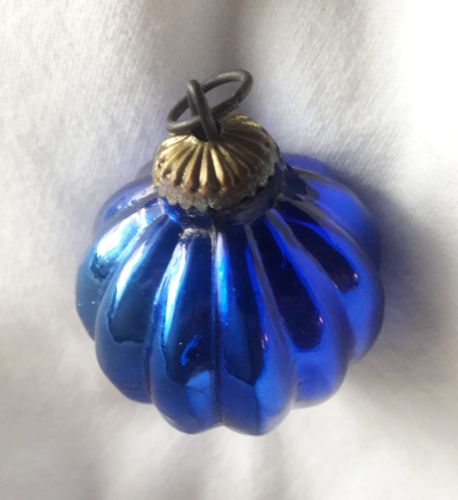 Title (ebay affiliate link): Antique German KUGEL ? 2" RIBBED COBALT BLUE Glass Xmas Ball ORNAMENT Vtg