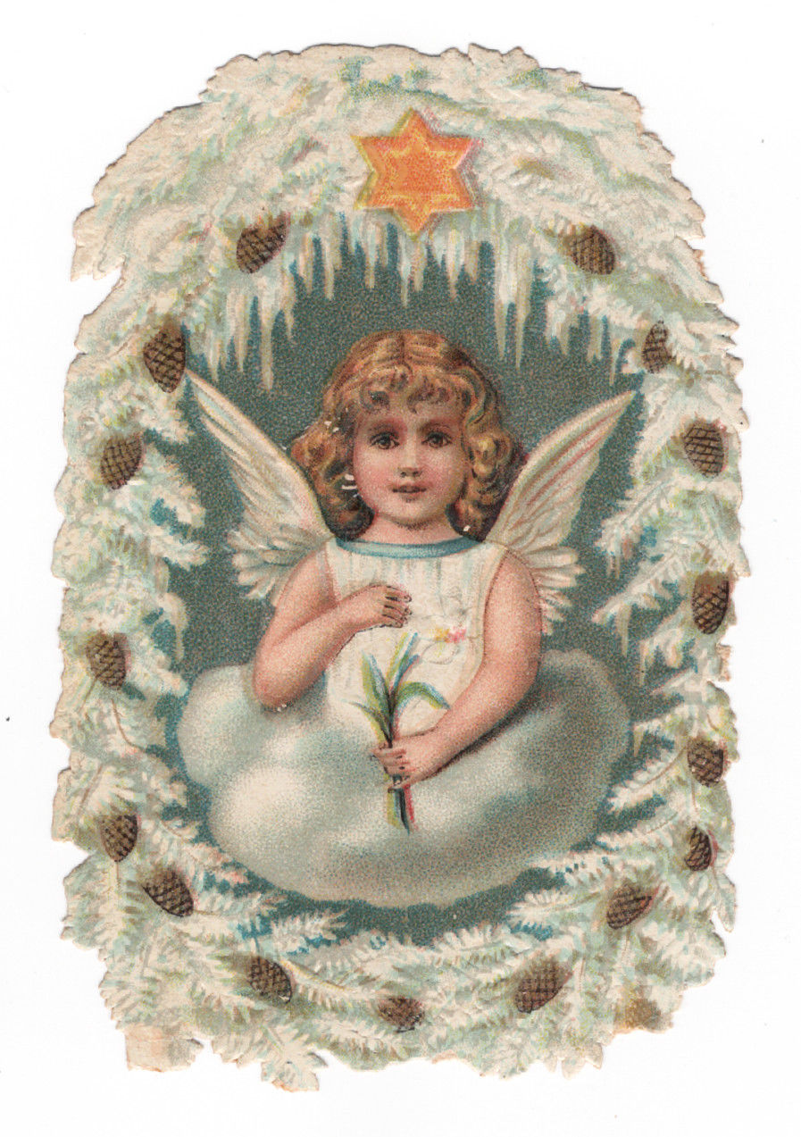 Title (ebay affiliate link): 1800s Antique Victorian Die Cut Scrap - Christmas Wreath & Angel