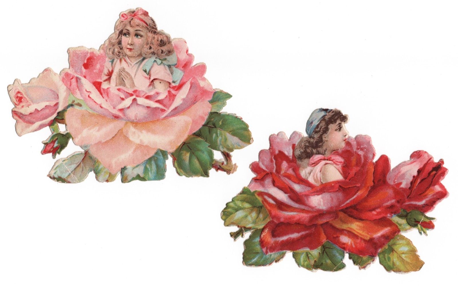 Title (ebay affiliate link): 1800s Antique Victorian Die Cut Scrap - Flower Girls lot of 2