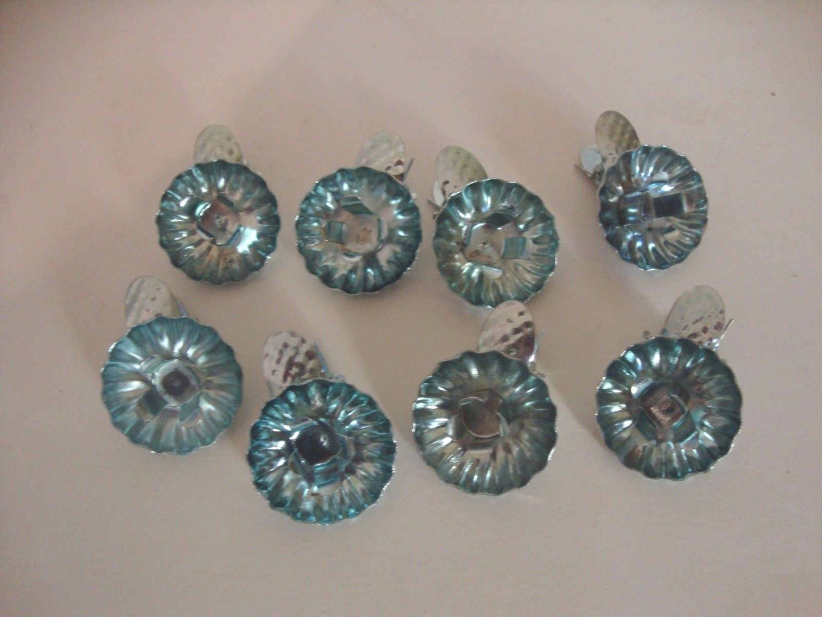Vintage Antique Metal Christmas Tree Clip On Candle Holders Light Blue - 8