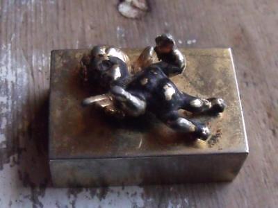 Sweet Old Small Vintage Pillbox Pill Box With Angel on Top Shabby Patina