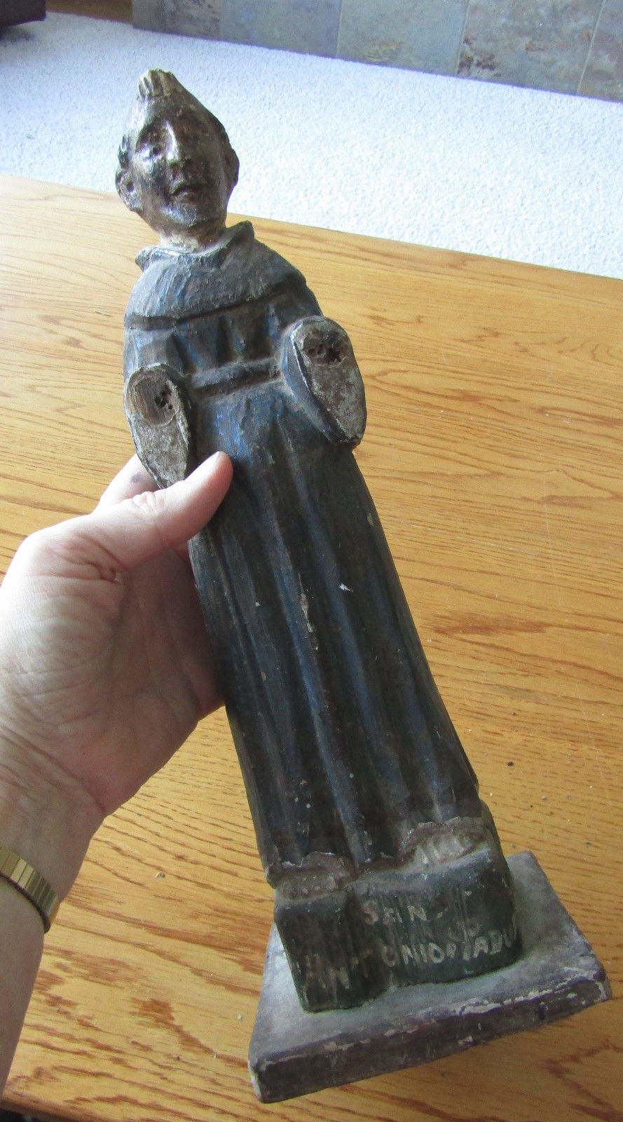 Very old Antique Folk Art Wood Carving San Antonio of Padua, 13" h, no hands