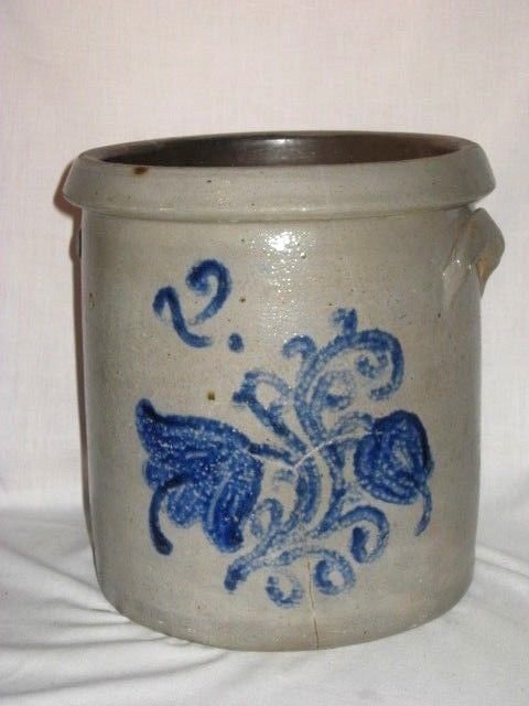 Title (ebay affiliate link): 2 G Appleton Valley Antique Wisconsin Stoneware Blue Flower Salt Glaze Crock