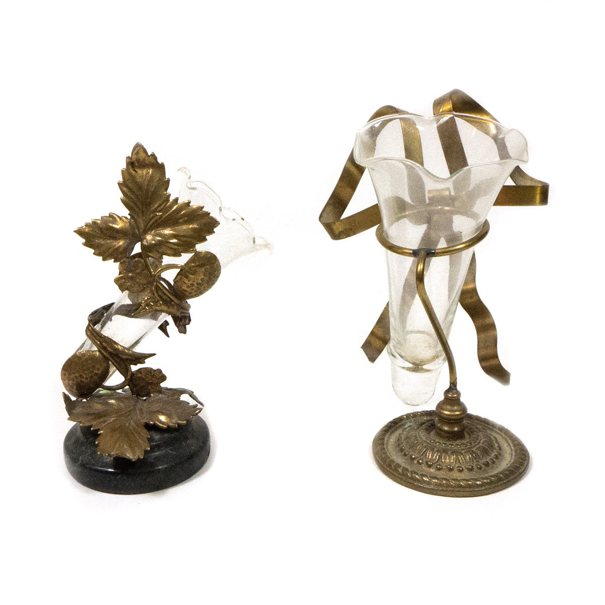 Title (ebay affiliate link): Lot of 2 Vintage Petite CHOSES Glass Bud Vases w/ Leaf Design & Ribbon Stands