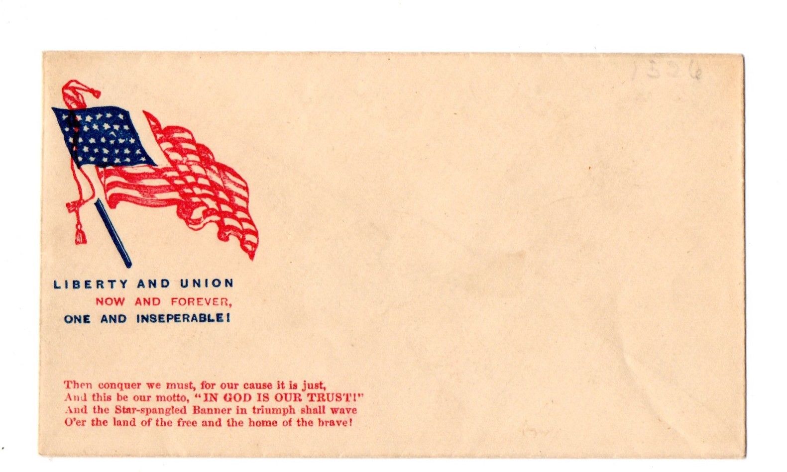 1860s LIBERTY & UNION NOW & FOREVER - ONE & INSEPERABLE CIVIL WAR COLOR COVER