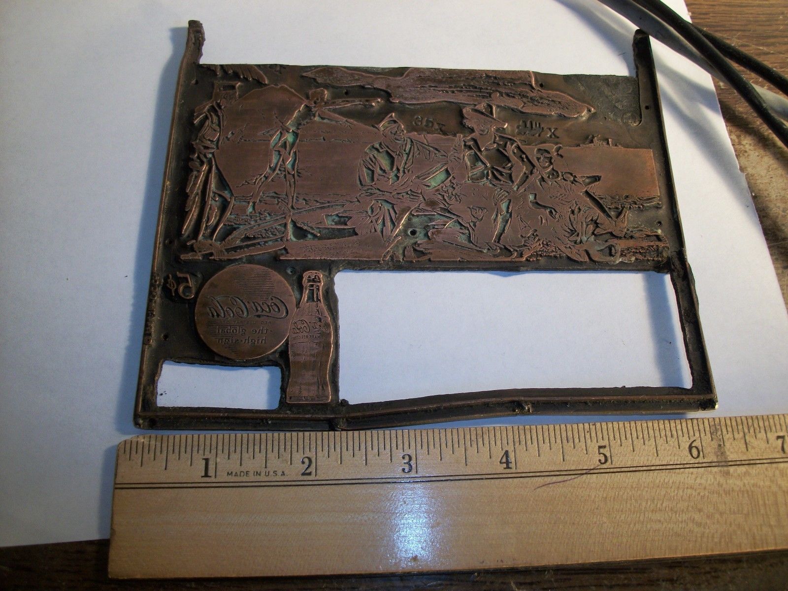 1944 Coca Cola, Coke copper printers block, showing military enjoying coke, rare