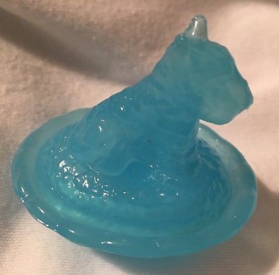 Title (ebay affiliate link): Blue Depression Glass Small Dog on Nest Salt Dip Schnauzer Terrier Dog- Unique!