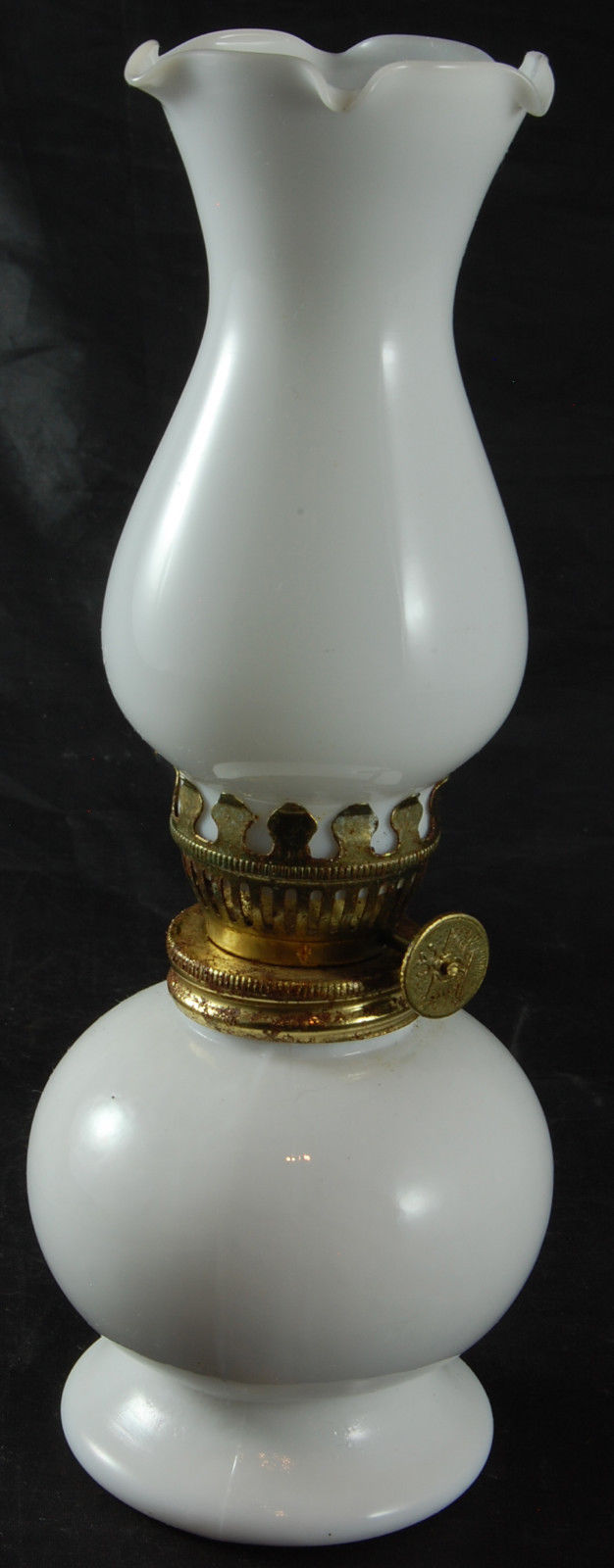 Title (ebay affiliate link): Vintage Miniature Oil Lamp - White Glass Base and Shade - 190mm