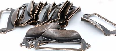 48 Oak Cabinet Drawer Tag Style label Pull Handles fit Antique Library card file