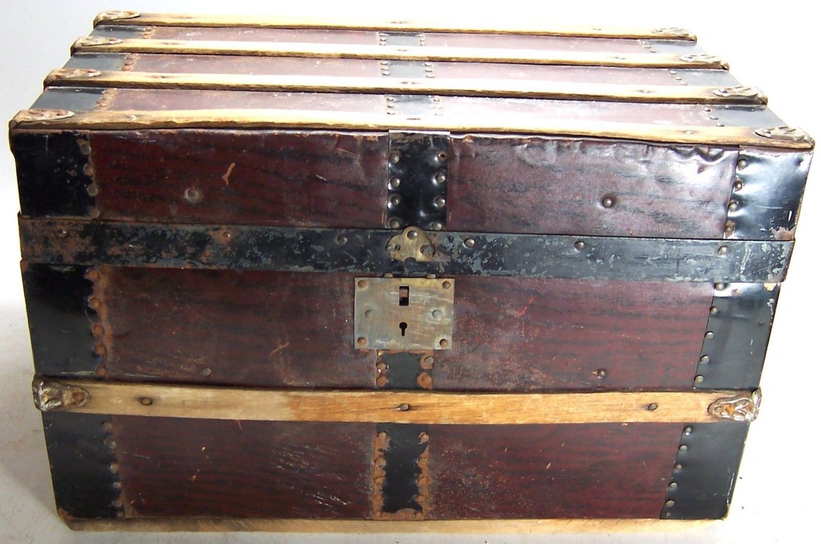 Antique Child''s Doll Salesman Sample Steamer Trunk with Wood Trim
