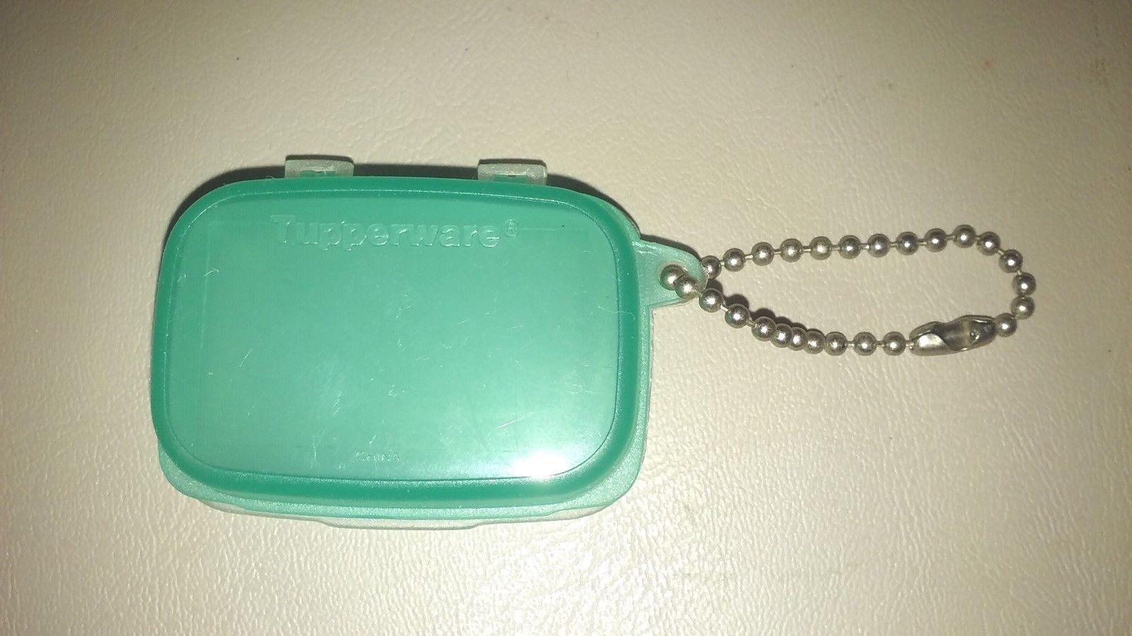 Title (ebay affiliate link): VINTAGE TUPPERWARE GERMAN green naschkatzchen keychain