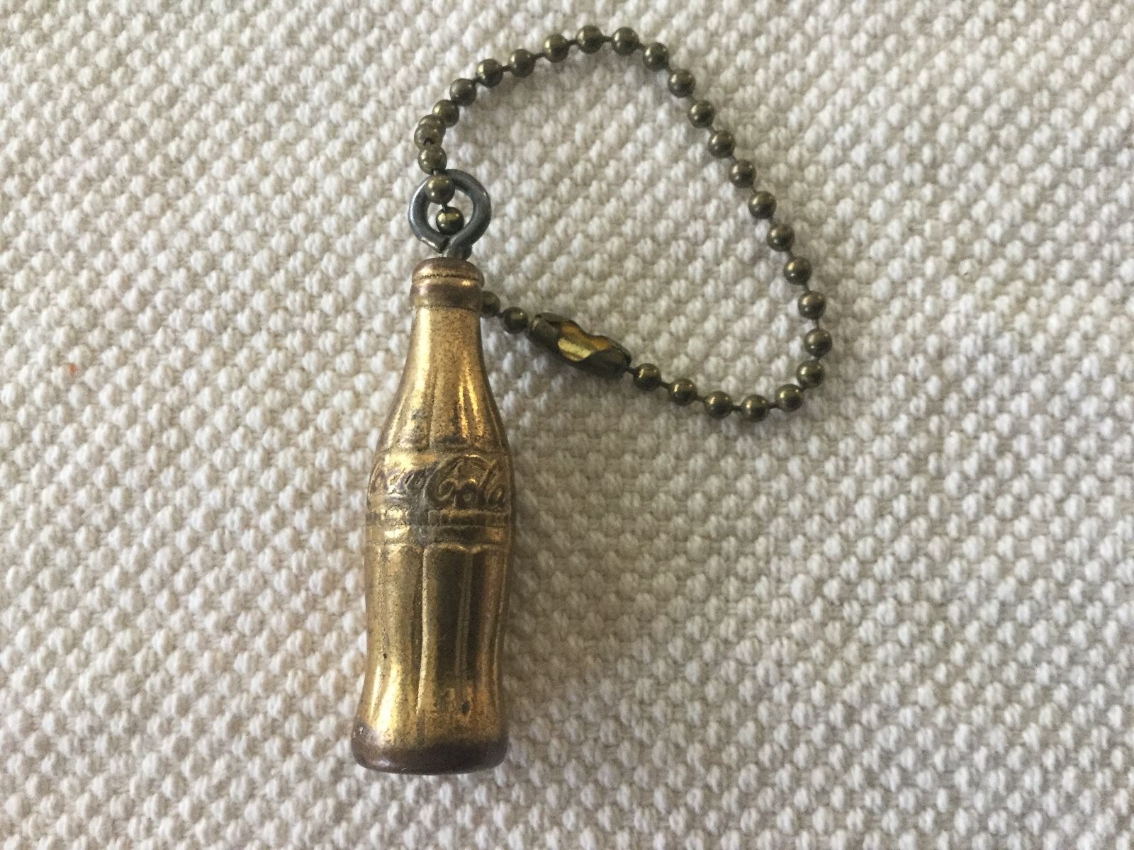 Vintage Coca Cola Miniature Gold Bottle Keychain