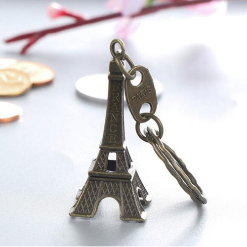 Title (ebay affiliate link): Paris Eiffel Tower Vintage Mini Metal Car Bag Mini Key Ring Keyfob Gift Bronze